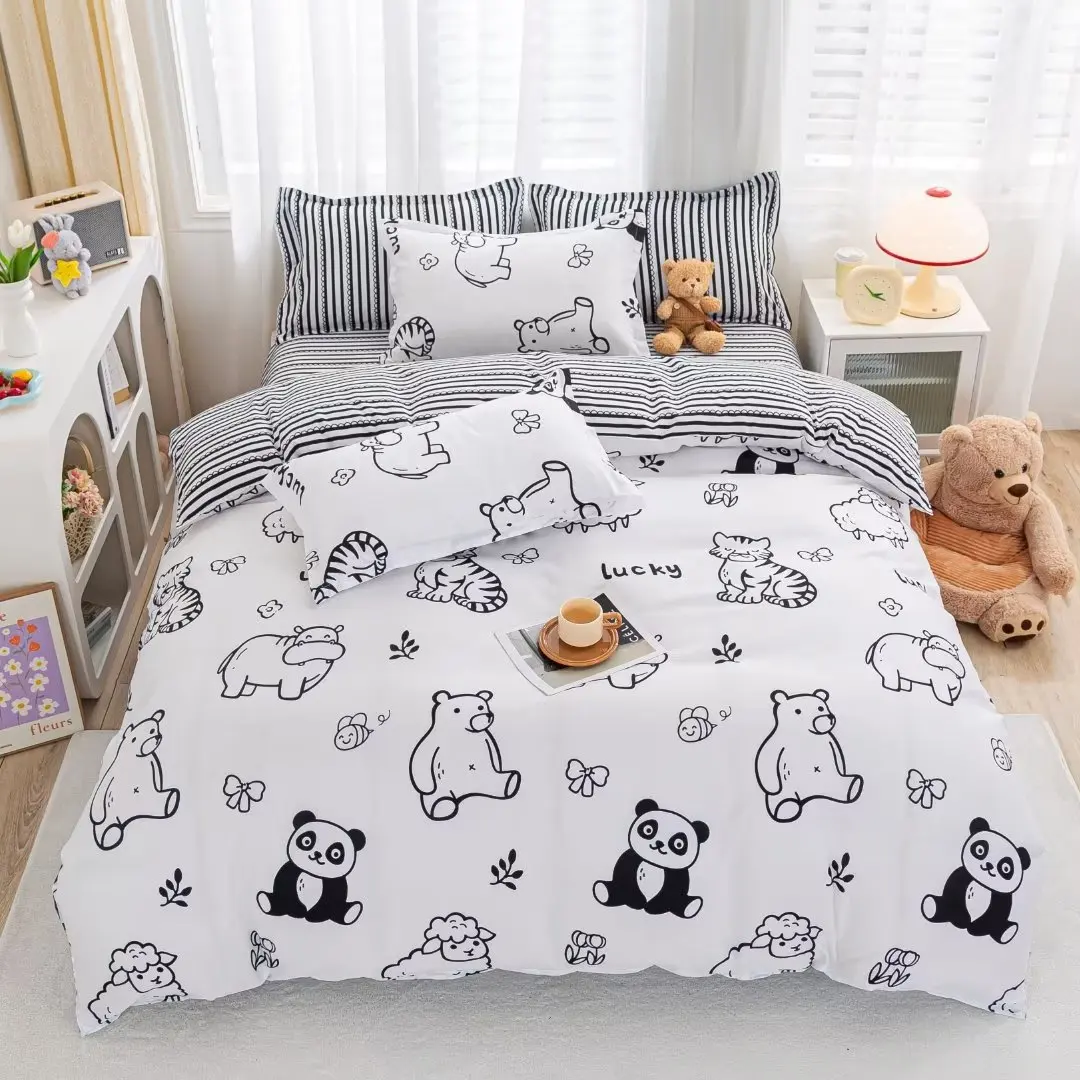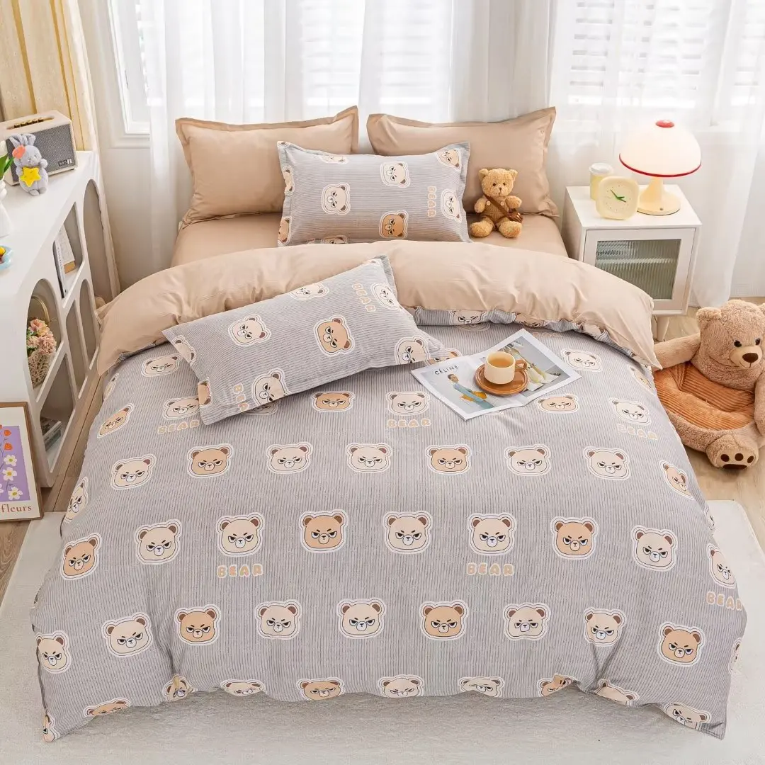 100% Polyester Home Textile Comforter Set Modern Style Cartoon Printed for Kids Includes 4 Pcs